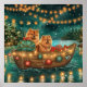 Sätt fart i julhelgens magi med denna vackert detaljerade illustration och visa en stolt hund sitta i en festivt dekorerad båt, som glider över en verklig jul sjö. Väntarna ljus från det närliggande gräs träd avspeglar sig utanför vatten och kastar en varm, feg glöd som förstärker den mysiga ambitionen. Ornament är farliga från båtens sidor, medan de lyser vägen och skapar en scen som fångar det verkliga kärnan i julens värme och glädje. Denna nostalgiska konst ger en aning helgdag magi åt vilket håll som helst, perfekt för dem som vårdar säsongens anda.