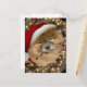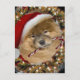 Festive Chow-dogmen håller Candy cane i munnen och står mot en tänd julandedräkt.