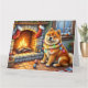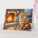 Chow Chow Sitting Fireplace with Christmas Lights Kort