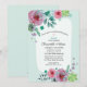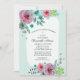 Mjuka rosa och gröna blommor formar den blekgröna inbjudan. Utsmyckad med ett litet kors. Del av "Chrisanthi Kollektionen".