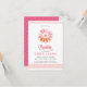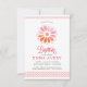 Den här snyggten och den moderna 3,5 x 5-tumsflickornas baptism eller julklappningsinbjudan har ett rosette-kyrkofönster av nedfläckad glas och en kompletterande dekorativ rosa och orange längs inbjudan:s övre kant och grund. Bakgrunden till färg och text kan anpassas för tillfälle med speciellare religiösa.