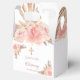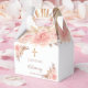 En vit bakgrund. Dekorerad med rosa och ro guld blommigtar, pampasgräs och guldgräs kor. Christening är skrivet med ett handskript i stil med en modern mörk ro färgad. Anpassa och lägg till ett namn och ett datum.