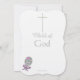 Elegant Christening Dotter-inbjudningar med enkla handmålade silver kor med guld-accenter på framsidan och baksidan av kortet. Färsk och skarp tittar. Christening och Barnets Namn är skrivet i skript för söt rosa. Anpassa med Baby First eller Mitten Namn, julklapp och detaljer. Baksidan har vit bakgrund med formuleringen "Guds barn" i silver. Silver baby härjar med rosa star och Kärlek i vit text. Originalteckning och Design © TamiraZDesigns.