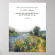 Impressionistisk målning av flod och blommor på flodstranden, med den bibelgiske versen Isaiah 43:2 När du passerar genom vatten kommer jag att vara med dig, och när du passerar genom floderna kommer de inte att svepa över dig.
