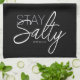 Designer-Trendiget stannar vid Salty Typography Christian Scripture Black Kitchen Towel. Svart kökshandduk med grått- och vit typografi. Stanna Salty Mathew 5:13 (I bibeln i Mathew 5:13 sa Jesus: "Du är jordens salt. Men om saltet förlorar sin salthet, hur kan det då göras saltat igen? Det är inte längre bra för någonting, förutom att kastas ut och trampas ned." Du kan läsa hela kapitlet (och hela bibeln - i ett stort urval översättningar, eller lyssna på audio biblar gratis på Bible Gateway https://www.biblegateway.com) Den här kökshandduken med dess chic trendig skulle fungera bra i hem- eller kyrkokök osv., underbar presentidé eller lägga till i en hemmaderhammare. All text, typsnitt och färg är anpassade. Vi inbjudan besöker vår Zazzle-butik, Beachy Design Co, för att hitta matchande produkter med mera. Kontakta oss om du behöver hjälp med utformningen.