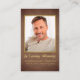 Den här elegant anpassningsbarna är ett kristet begravningskort med ett foto som gränsas av ett faux guld ram på en bakgrund på ett faux-brunt läder och nedanför fotot i det moderna handskrivna guld-skriptet står det "In Loving Memory" med ett namn och data för att personalisera. På baksidan av kortet finns Psalm 23 som kan vara.lämnat som eller anpassat till en annan bön. Designad av ©Susan Coffey.