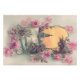 Vår skickar en Påsk hälsning till någon! Den här vintagen visar ett snöslandskap med en kyrka. Rosa ros gräns bild.