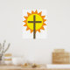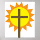 Christian Cross with Yellow Sun and Orange Rays Poster