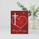 Bilder av vitt kristet kor, hjärta och en stjärna högt i himmel. Bibelns citat: När de såg stjärnan gladde de de sig över att ha överträffat underbar glädje. Matthew 2:10. Vit text God jul i grund. Mörkens röda texturerad bakgrund. Anpassade Cristian julkort till vem som helst. Du kan ändra eller ta bort malltexten i bakgrunden. God jul och Gott nytt år. Lycka till med er och era!