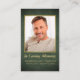 Den här elegant anpassningsbarna innehåller ett fotografiskt begravningskort med en bild som gränsar till ett faux guld ram mot en bakgrund på ett faux grönt-läder och nedanför fotot i det moderna handskrivna guld-skriptet står det "In Loving Memory" med ett namn och data för att anpassa sig. På baksidan av kortet finns Psalm 23 som kan vara.lämnat som eller anpassat till en annan bön. Designad av ©Susan Coffey.