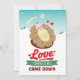Ett toppen sött julkort från baby Jesus och ord: Kärlek kom ner. Med bibelskriften av John 3:16 på baksidan.