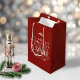 Christian jul Verse Typography Helgdag Gift Bags med Luke 2:11 i festlig typografi på en rustiskt röd bakgrund, med precis blomning av vita gräs grenar och gräs.