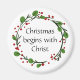 Kristus julklapp Skriptur med rött, grönt Holly-krandjulen börjar med Kristus