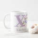 Exemplet Xavier namn. Förnimbar blommigt för pastellfärgad med monogram och namn på mottagaren. Inledningsvis är brev X. Christian Namn och först Initial med ett Blommönster kaffe mugg.