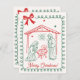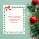 Share a faith-filled holiday greeting with this classic nativity design. Clean red-and-green line art shows Mary, Joseph, and Baby Jesus beneath the star in a simple stable, framed by a loopy border and festive bow with “Merry Christmas!” script. The back includes a matching border and an editable blessing—add your family names or a favorite message in minutes.