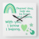 Monogrammet för att du ska sätta in din egen bön, om du så väljer, kantig väggklocka. Det här söta boho-temat med gröntens regnbåge och galaxi och grönt på vit bakgrund, stater, Gud, hjälp mig att vara modig och stark. Med dig, jag vet att jag hör hemma.
