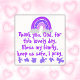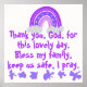Monogrammet för att du ska infoga din egen bön om du så önskar, poster kvadrat. Det här söta boho-temat med lila och rosa regnbåge med moln och lila på vit bakgrund, stater, Tack Gud för denna vackra dag. Bless my family, behålla oss säker, jag ber.