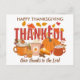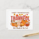 Få redo för Thanksgivingen med det här vykortet THANKFUL Happy thanksgiving med ANPASSADE TEXT. Utformningen visar en uppsättning pumpbehandlingar och hösten höst löv med THANKFUL i fet typografi. Under den kristna ordalydelsen är GE TACS TILL LORD anpassadet, så att du kan anpassa dig till din egen text. Anpassa säsong hälsning på baksidan. Matchande gåvor och party-förråd finns tillgängliga.