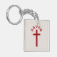 En enkel och slående textdesign för kristna som har ett stort rött kor i mitten och ord "Sparad" i ett fet rött stampat utseende som är böjt under kor på framsidan och lägger till ett eget foto eller text på baksidan. Välj färg och stil.