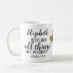 Anpassade namn mugg med skript från Matthew 19:26 "med Gud är alla sak möjliga" med vattenfärgade solrosor och kor, med manus och serif-typografi.