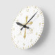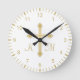 Den här väggklockan har en kristen faux guld kor i mitten med monogrammade initialer för att du ska kunna anpassa dig. Bakgrunden till ansikte är vit med faux-guld-markeringar och siffror för tillfället. perfektens gåva till religiösa tillfälle med mera. Designad av konstnären ©Susan Coffey.