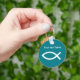 En enda kristen nyckelkedja med fisksymbol som man kallar Jesus Fisk, som också kallas Ichthys Fish och text som du kan anpassa, kommer att anpassas efter din egen religiösa eller inspirerande trosbudskap.