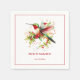 Behåll dina gäster med den här charmerande julfesten napkin-designen har en vacker jultomteskugga omgiven av en vinterblombukett på vit bakgrund. Anpassningsbar röd typografi.