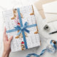 This adorable Akita dog is dressed for the holiday season in a red Santa hat, sitting against a soft woof word art background.