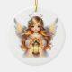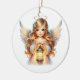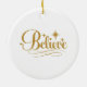 This ceramic ornament is shown with a cute holiday angel art print with a believe print on the back side.
