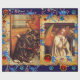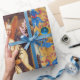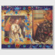 Oljemålning av den flamländska målaren Jan van Eyck,The Gent Altarpart: Änglar Spelmusik and Annunciation Angel -1426-27.Elegant, klassisk, klarsynt och god jul-design på parkering med antika Florentinmotiv för blommigt och en blankt 3D Blue sapphire och red ruby gemstones .