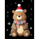 "This adorable illustration features a cheerful brown teddy bear wearing a festive red and white Santa hat and a cozy striped scarf. The bear has rosy cheeks and a soft, plush look, making it incredibly inviting. This charming graphic is perfect for children's Christmas apparel, holiday cards, ornaments, cozy blankets, or any product celebrating the sweet and simple joys of the holiday season."