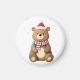 "This adorable illustration features a cheerful brown teddy bear wearing a festive red and white Santa hat and a cozy striped scarf. The bear has rosy cheeks and a soft, plush look, making it incredibly inviting. This charming graphic is perfect for children's Christmas apparel, holiday cards, ornaments, cozy blankets, or any product celebrating the sweet and simple joys of the holiday season."