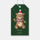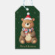 "This adorable illustration features a cheerful brown teddy bear wearing a festive red and white Santa hat and a cozy striped scarf. The bear has rosy cheeks and a soft, plush look, making it incredibly inviting. This charming graphic is perfect for children's Christmas apparel, holiday cards, ornaments, cozy blankets, or any product celebrating the sweet and simple joys of the holiday season."