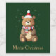 "This adorable illustration features a cheerful brown teddy bear wearing a festive red and white Santa hat and a cozy striped scarf. The bear has rosy cheeks and a soft, plush look, making it incredibly inviting. This charming graphic is perfect for children's Christmas apparel, holiday cards, ornaments, cozy blankets, or any product celebrating the sweet and simple joys of the holiday season."
