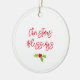 Christmas Blessings Holly Festive YEAR Holiday Joy Julgransprydnad Keramik