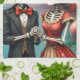 Christmas Bone Romance, A festive skeleton couple. Kökshandduk