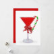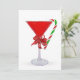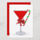 Red martini glass with a Christmas candy cane and red gift bow on a white background.