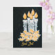 A chic Christmas Card with the greeting in Swedish and five candles with holly, hand-painted in gold and silver paint on a starry black background.
