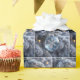 A delicate glass ornament with a snowflake design hangs on a frosty pine branch, while glowing lights in the background create a festive atmosphere