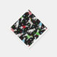 Cute Christmas dogs in festive holiday outfits. Dalmatian with black and white coats wear Santa hats, antlers, sweaters on a holiday background with scattered ornaments.