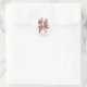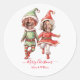 Cute dancing christmas elves couple classic round sticker with place for 2 photos. Personalize with photos and names.