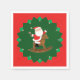 Creative equestrian Christmas holiday party napkins featuring funny Santa riding a rocking horse.