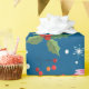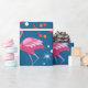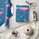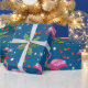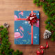 Elegant Christmas flamingos and holly pattern on a dark blue background, perfect for creating beautifully wrapped gifts.