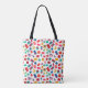 Christmas gift motif pattern in bright colours; the presents are scattered all over the bag and have ribbon and string tying them. A fun and bold design for this tote bag