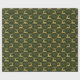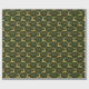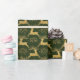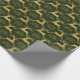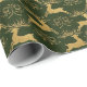 This design features a repeating pattern of stylized golden reindeer with large, ornate antlers, shown in a leaping or running posture, set against a rich, textured leather, deep green background. Interspersed between the reindeer are swirling, decorative golden motifs that enhance the luxurious, festive feel. The overall appearance suggests an elegant and traditional aesthetic, making it an excellent design choice for Christmas wrapping paper and decor.