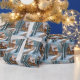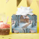 A whimsical gingerbread house is nestled in a snowy forest, illuminated warmly from within, as a snowman waits on a stone pathway