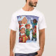Children laugh and play beneath a glowing gingerbread house in Christmas Gingerbread Play. Five kids bundled in bright winter coats build snowballs, sip steaming cocoa, and exchange gifts beneath candy-cane trim and twinkling lights. Snowflakes drift over frosted rooftops and evergreen boughs, creating a storybook moment full of warmth, friendship, and holiday wonder. This painterly scene is perfect for cozy apparel, family gifts, and seasonal decor that celebrates childhood joy and festive togetherness.