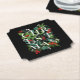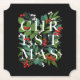 Ord CHRISTMAS sitter mellan löv och bär på en svart bakgrund (eller färg) på dessa kvadratiska pappra underlägg i biljett stil, elegant för helgdag eller tillfälle som ge. MATCHING-objekt i vår butik.