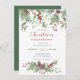 This invitation features a festive watercolor Christmas greenery design with elegant holly leaves, pine branches, and seasonal botanical details. The classic holiday color palette combined with a soft hand-painted style creates a warm, inviting, and timeless look.