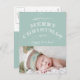 GOD JUL HOLIDAY GREETINGS POSTCARD in MINT GRÖNT. Skicka ditt Baby Första julen Hälsning till familj och vänner med det här Julhälsningar vykortet med ditt foto och ett SCRIPT-teckensnitt. En enkel mångsidig design av Elke Clarke©. Kontakta butiksägaren för annan färg